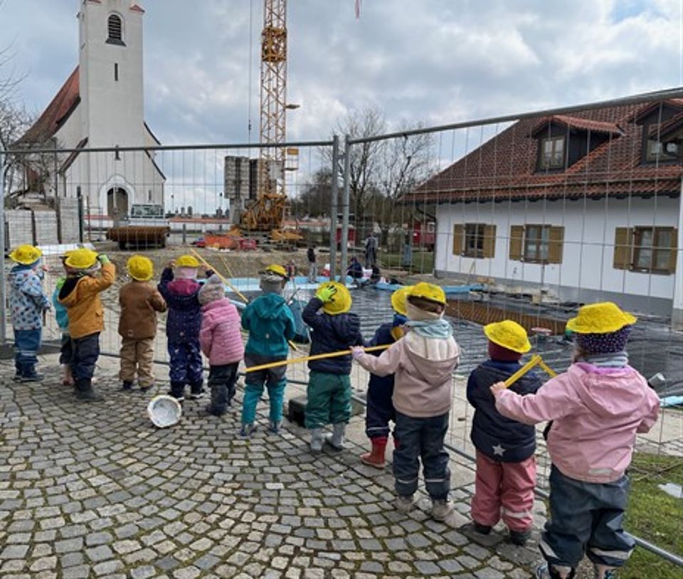 Seit Februar 2025 ist im Garten des BRK-Kinderhauses Baiern große Baustelle. Der Schuppen im Garten wird versetzt und anstelle dessen, wird eine Erweiterung des Kindehauses gebaut. Die verschiedenen Arbeiter und Maschinen wecken großes Interesse bei den Kindern. Passend hierzu wird das Projekt “Baustelle” mit den Kindern behandelt. Dabei werden die verschiedensten Gewerke, Aufgaben, Kleidung und vieles mehr, genauer betrachtet. Zudem wird der Verlauf der Baustelle von den Kindern genau im Blick behalten.