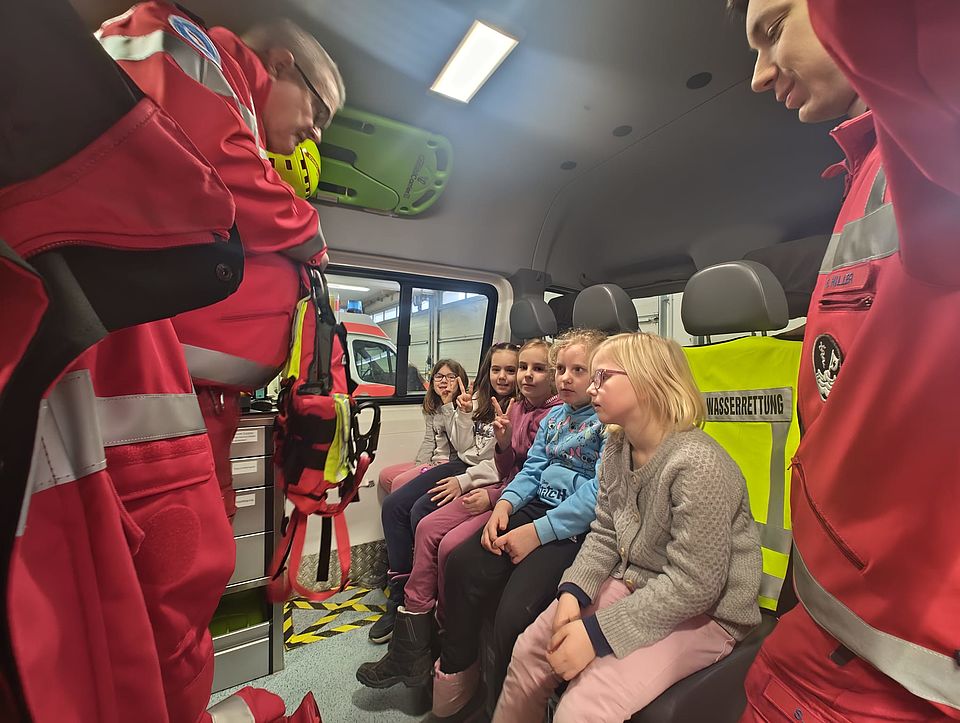 Auch in diesen Faschingsferien wurde durch den BRK-Kreisverband wieder ein umfangreiches Ferienprogramm angeboten. Fünf Tage lang war das Programm komplett ausgebucht, geleitet von ehrenamtlichen Gruppenleitenden und weiteren Helferinnen und Helfern. Montags startete das Programm mit einem Ausflug nach Rott in die Confiserie Dengel, gefolgt von einer bunten Faschingsparty mit Musik, Spielen und Krapfen-Verzieren am Dienstag. Am Mittwoch machten sich die Teilnehmenden auf ins Heldenverlies nach Kirchheim und lösten dort spannende Rätsel im Labyrinth. Die ehrenamtlichen Gemeinschaften präsentierten sich am Donnerstag mit ihren Fahrzeugen und boten den Kindern ein breites Programm an den Stationen an, nach deren Absolvierung es ins Ebersberger Hallenbad ging. Zum Abschluss konnte am Freitag noch das Schloss Elkofen besichtigt werden. Das Programm endete mit Spielen im Schnee.