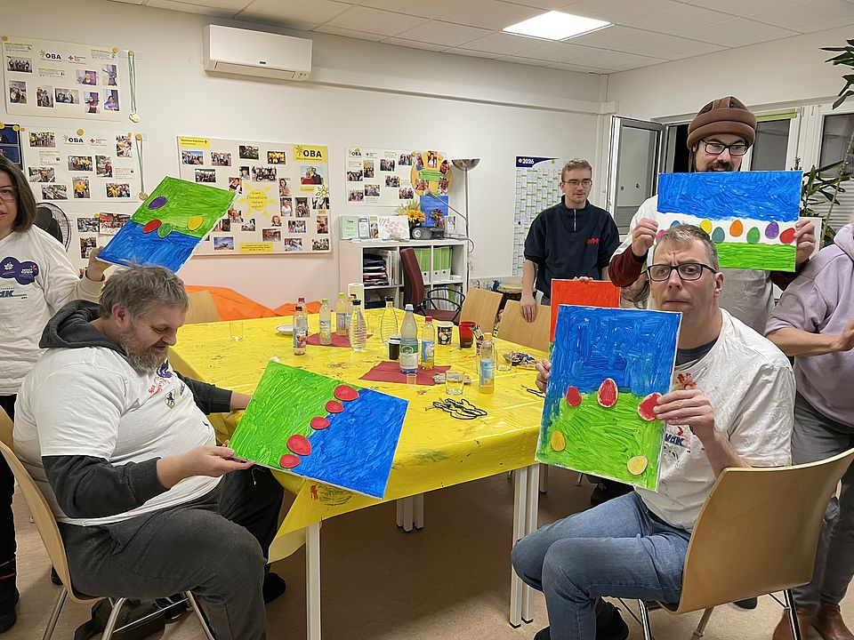 In der Kreativ-Werkstatt wurden die ersten Frühlingsbilder gemalt. Mit viel Freude entstanden tolle Osterbilder. Gabi und Quirin halfen als Ehrenamtliche mit.