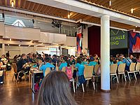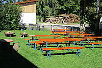 Die Luft flimmert, es knistert, Rauchschwaden ziehen über den Platz, die Gäste kommen an, die Band formiert sich………Auftritt für …… (die Gedanken sind frei…): Die Kinder mit ihrem Lied: „Drunt in da…